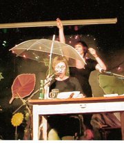 Hillary Keel reading her poetry under the umbrella...ummmbreeellllaaa!
