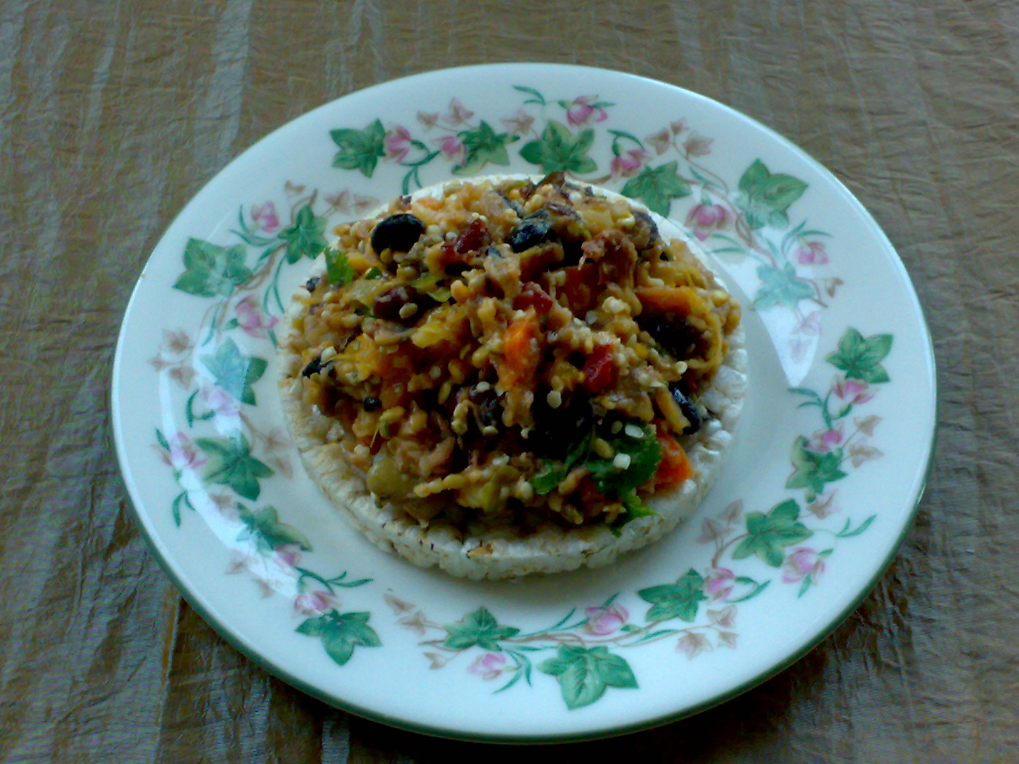 - Spread on rice crackers or your favorite bread. You could also pack this into pita, roll up in wraps, or use as a dip for corn chips or raw veggies. Mmmm – yummy!