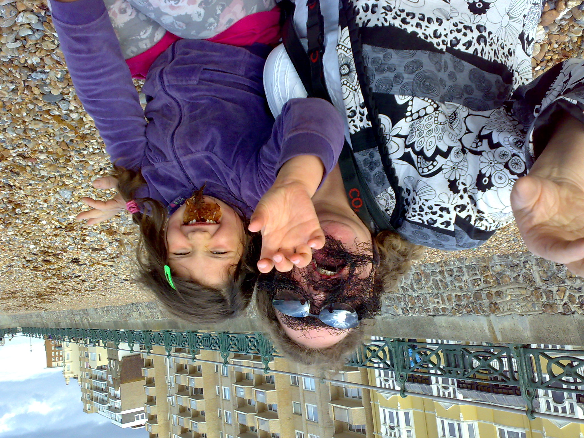 Last Friday I went to the beach for ice cream with a friend and her 6 year-old daughter. We were playing with the seaweed, when I decided to put it on my face to make me look like a gorilla or some kind of wild animal. I was intrigued when Flo picked up a different kind of seaweed and used it to make monster teeth!