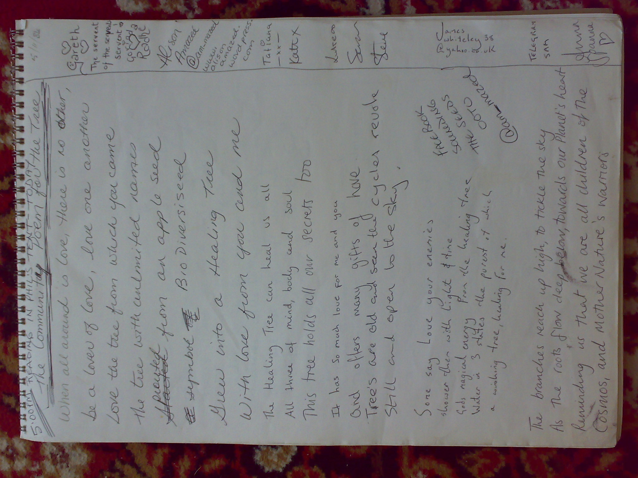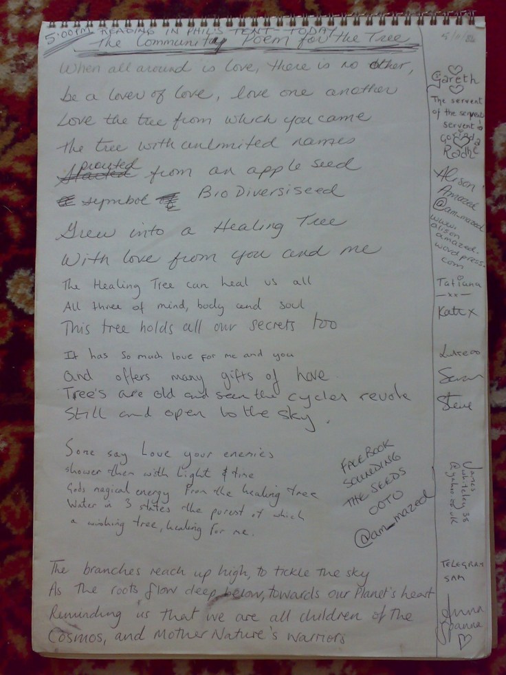 Here at last is the community poem written by visitors to BioDiversiTree OOTO 2011!