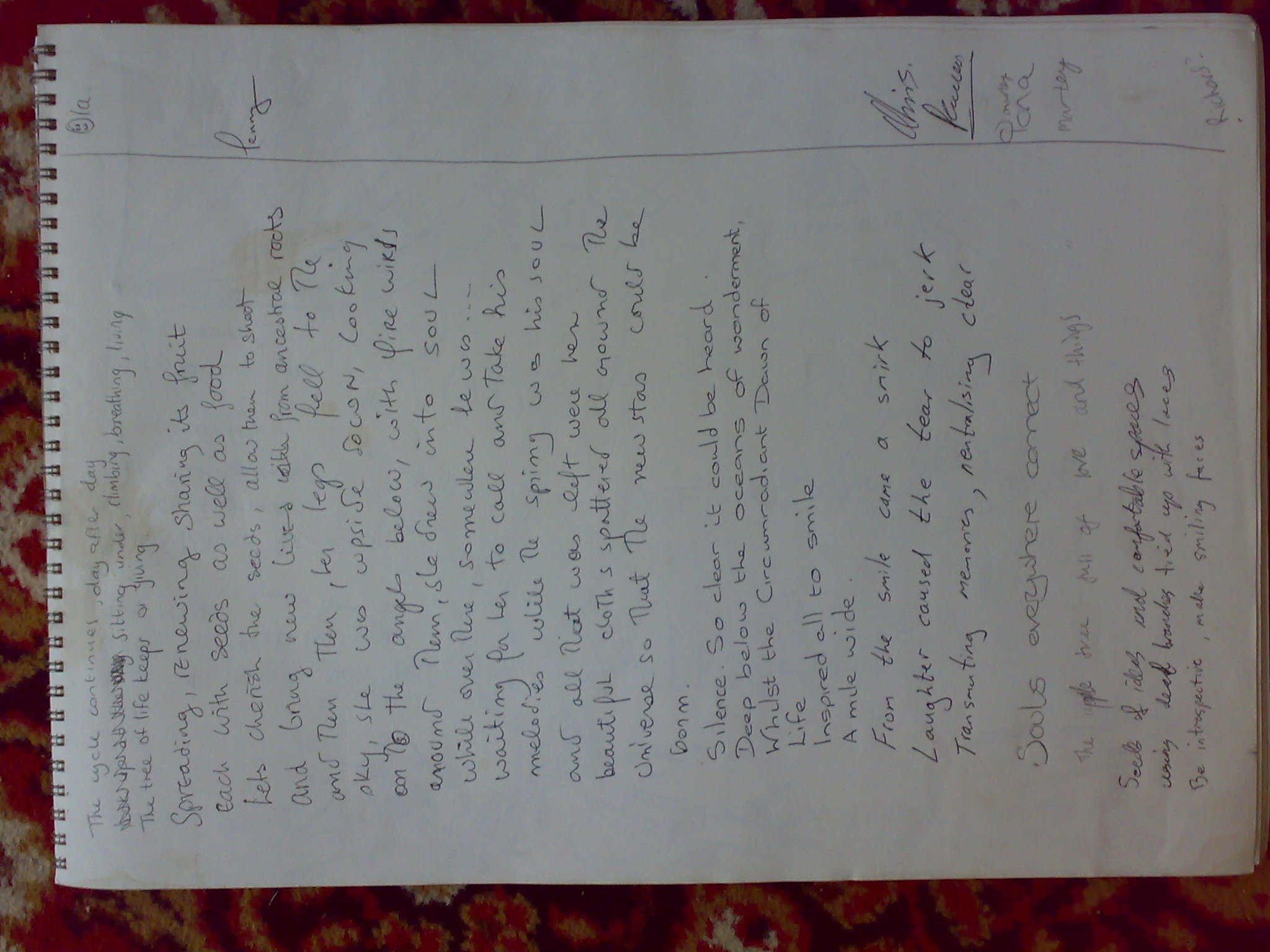 I was going to start the poem, but Gareth – who had been cooking breakfast for the crew every morning – had come back to the tree with me (after cooking me a delicious breakfast of scrambled egg, tomato and rice!)