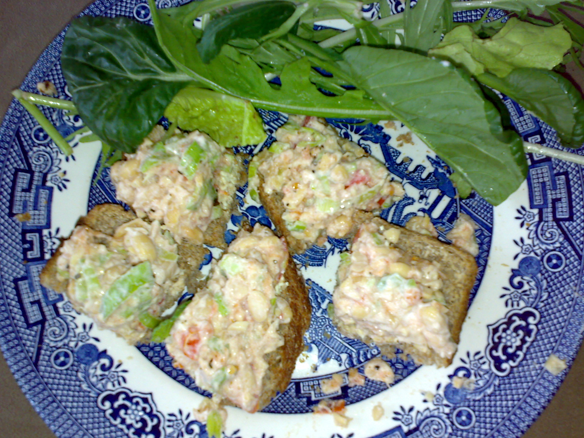 - Mix all together with a little salt’n’pepper, a pinch of dried red chili, and a dollop of mayonnaise