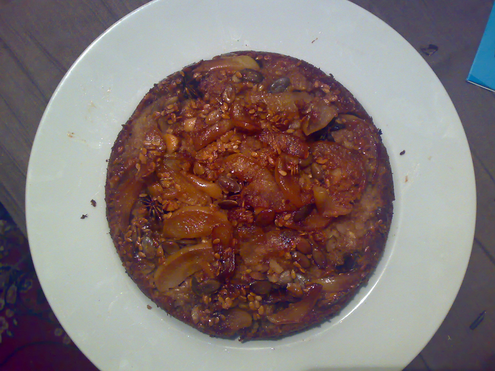 - Place the dough on top of the apple/sugar/seed/nut mixture and spread it out so it fills the pan.