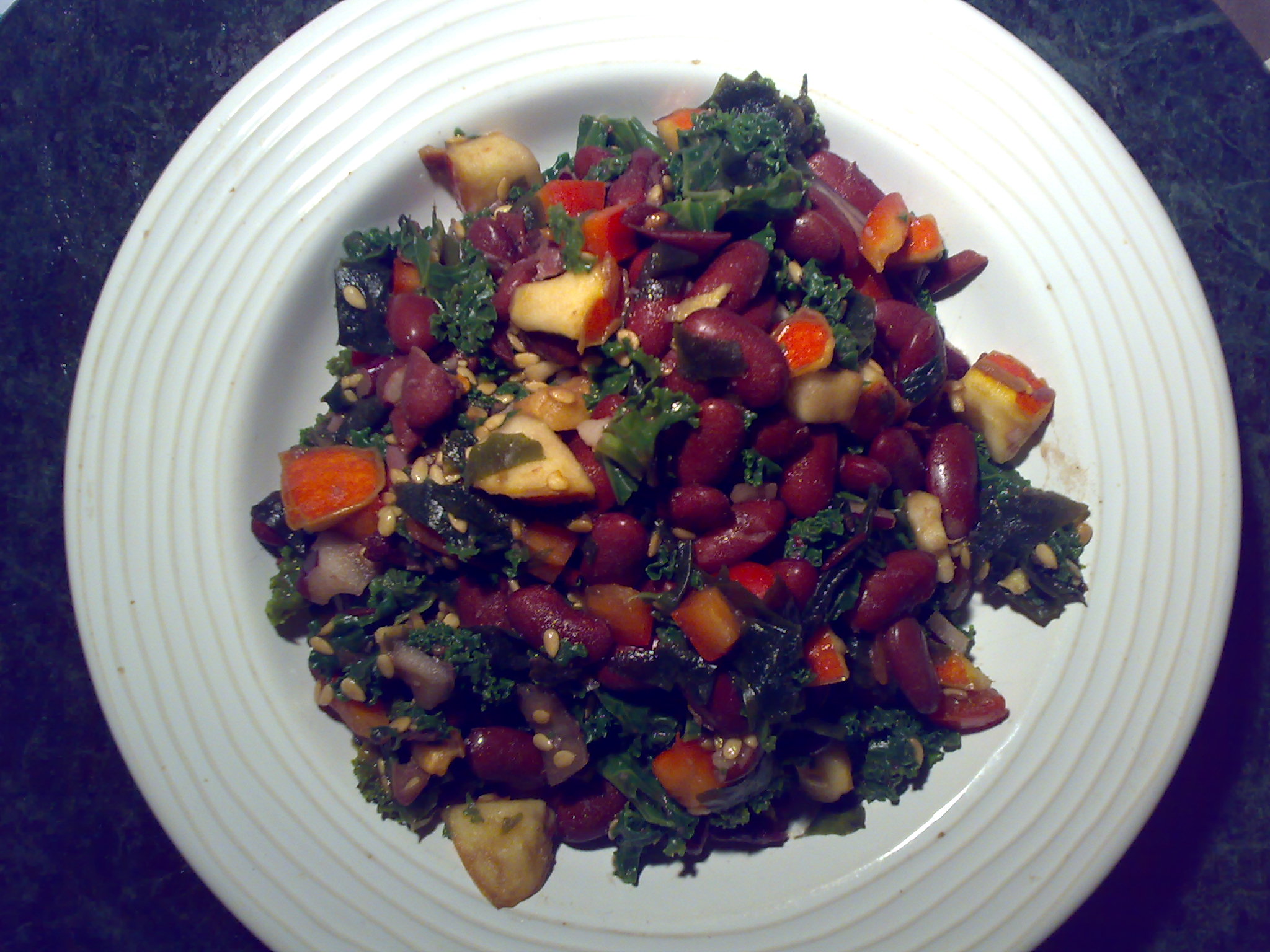 where I ate some great food, and cooked-up the pot of red kidney beansI’d put to soak the night before. When they were done, I made this salad, working intuitively, searching my memory bank for the tastes and textures I was after.