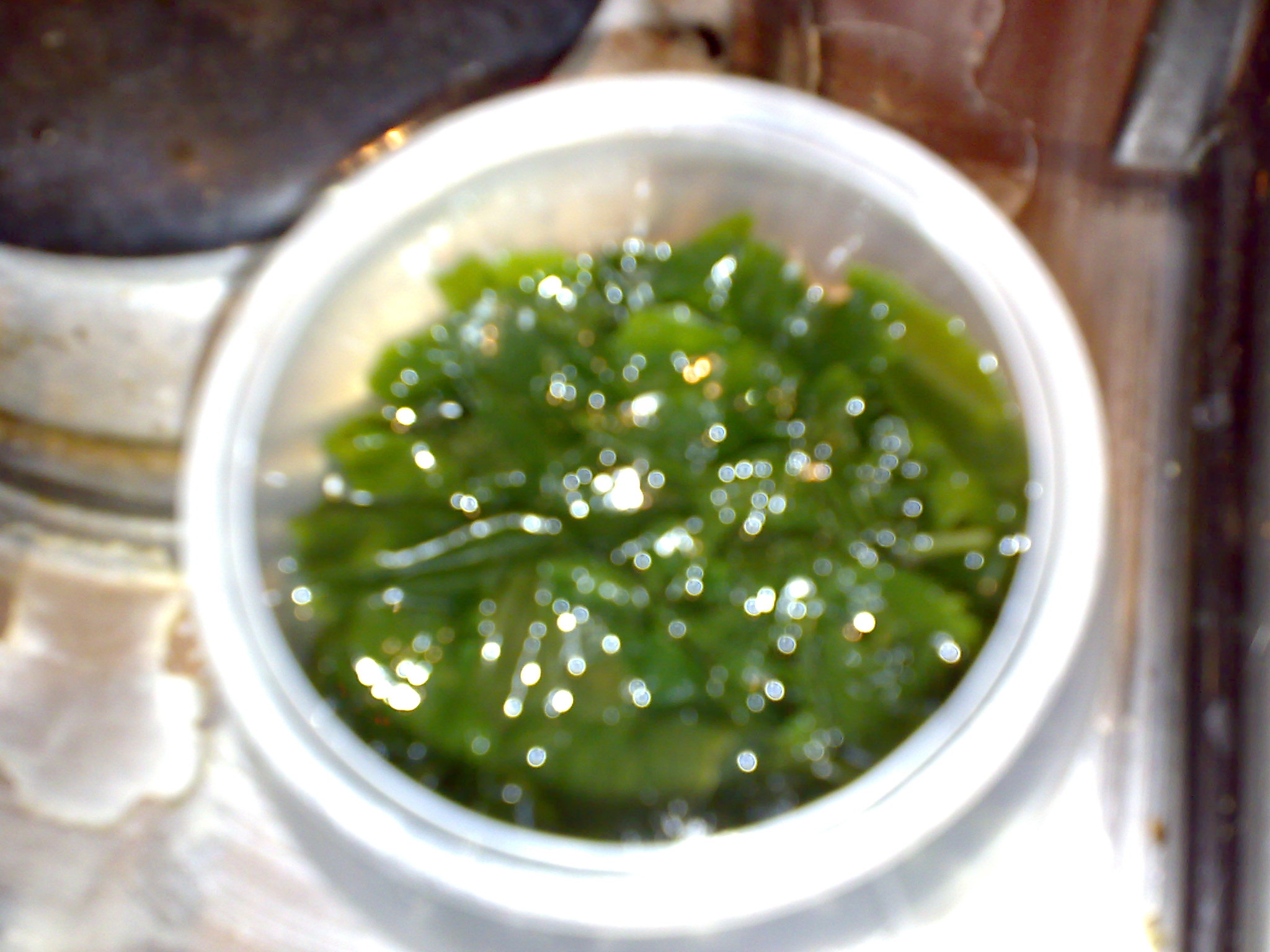 Stir in a little soaked wakami, cover and simmer over low heat. When you think it’s starting to taste right, turn off the heat and let it stand on the stove for a couple of hours. When you reheat to serve, rinse out one of the tomato packs with water and add that to the pot.