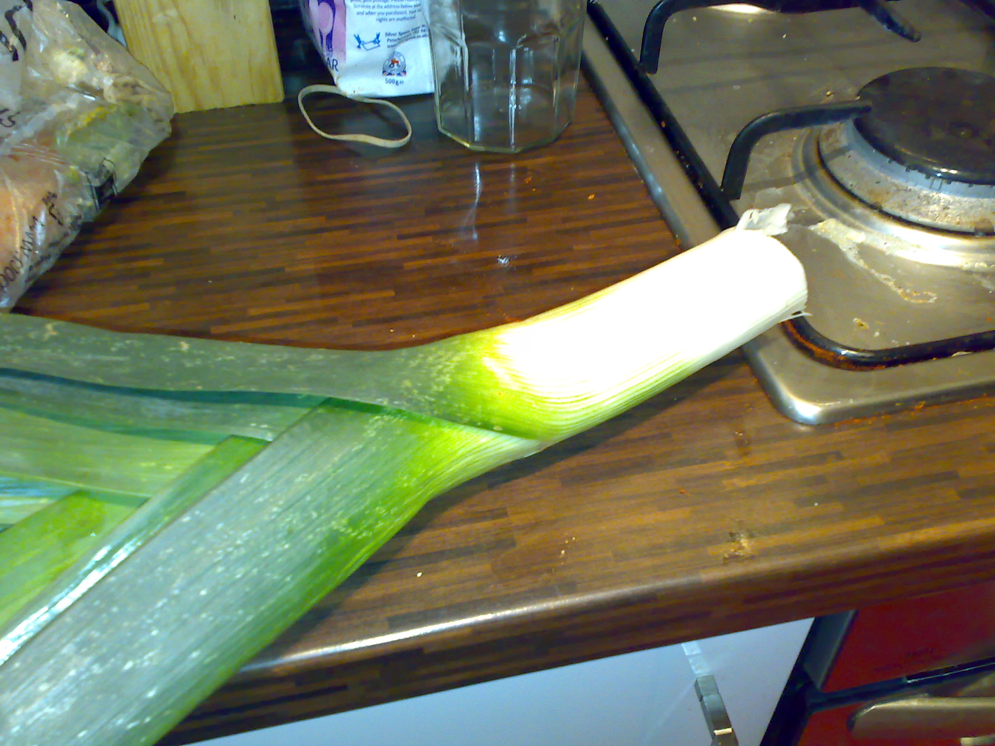 I have a leek in this week’s veggie box, so I slice ‘n’ dice 1/2 of that, and add: