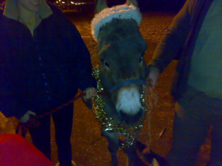 Albert the Donkey who made a public appearance at the Christmas Eve Advent Beach Hut. He's a professional celebrity donkey. Just hangs around wearing silly costumes and eats carrots all day.