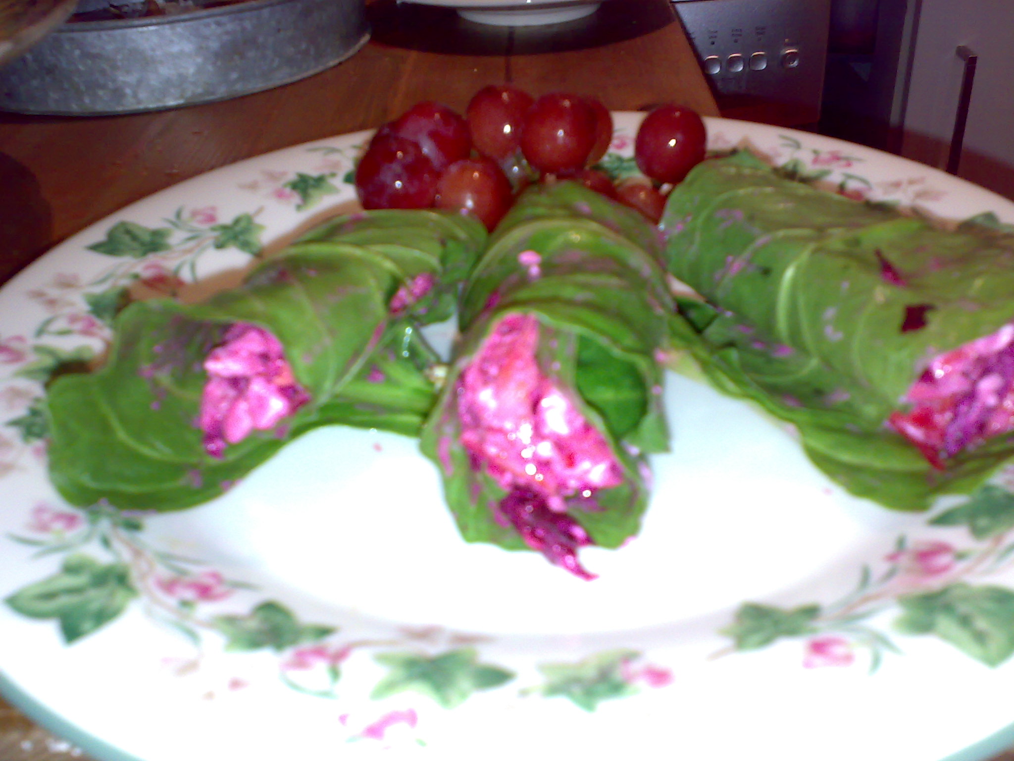 Mix with 100 grams of cottage cheese, and wrap in 4 large perpetual spinach leaves.