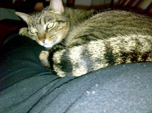 We also had a resident cat who slept on Albert's bed at night, and on this black cushion during the day.