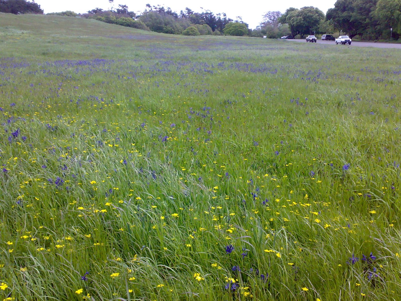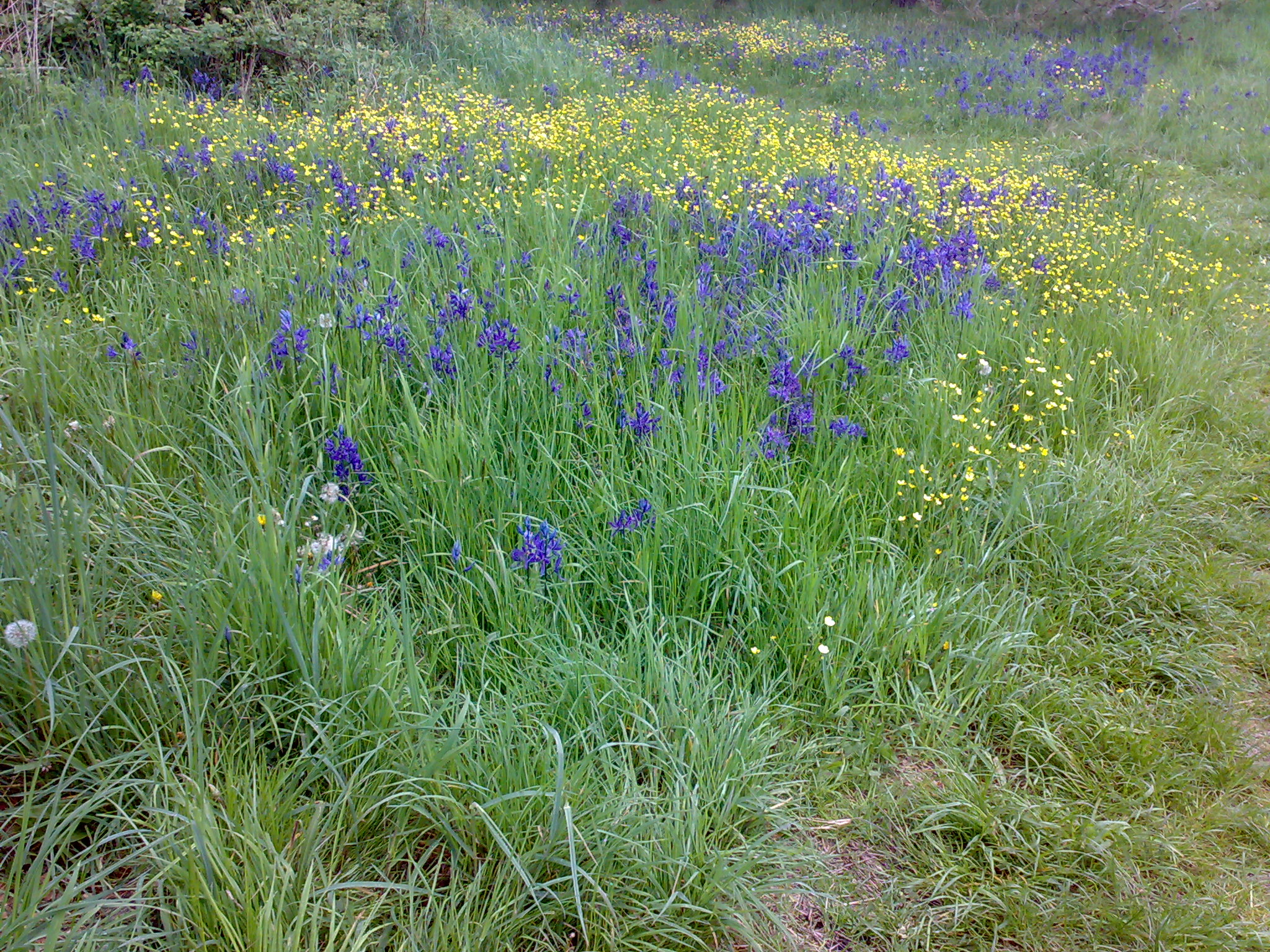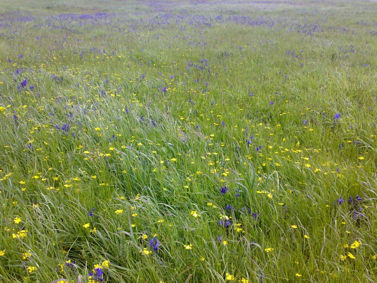 Blue Camus and yellow buttercups paint the meadows behind Beacon Hill Park, along Dallas Road
