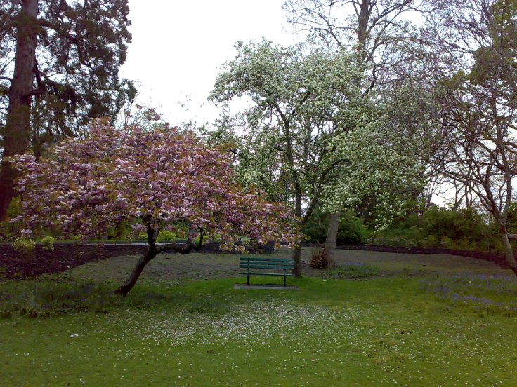 I first visited Victoria in about 1974 – came here on a summer holiday with my parents. I fell in love with Beacon Hill Park. It was summer time and the rose bushes were in full bloom.All these years later, it’s wonderful to return, most especially in the springtime when the cherry trees are blossoming, and shedding a blanket of pale pink petals on the ground beneath.