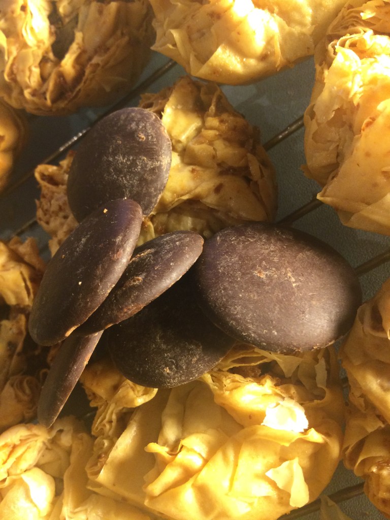 Bitter Chocolate Phyllo Cups Then there’s all that left over phyllo pastry, a bunch of unsweetened chocolate buttons, and a few walnuts…conspire to make bundles of buttery bitter chocolate phyllo! Share this:Share Click to email a link to a friend (Opens in new window) Email Click to print (Opens in new window) Print Tweet Click to share on Reddit (Opens in new window) Reddit Share on TumblrLike Loading... Related Leave a comment Cancel reply Δ