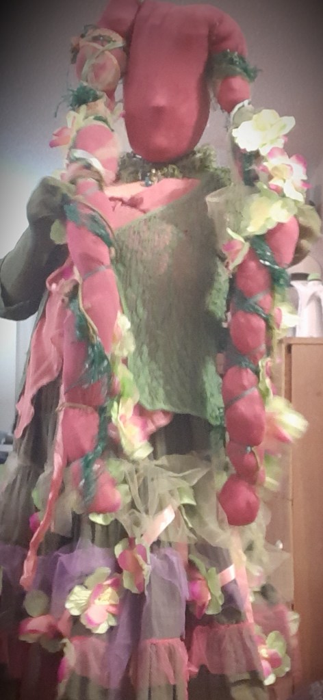 I put Fabulously Fat aside, and kept working BegonY’as. In 2025 I took it public again, improvising live with musicians at NorthPark Open Mic. Afterwards a woman sang the finale back to me, and I knew my poem was starting to find its path. Every subsequent performance has refined it further: audience members prompted me to shift banishing ‘isms’ to the Oppressor Alphabet; one person called for more rhymes in the introduction; another told me I need to tell them I’d made the costume. The linked video (scroll to the end of this post to find the link) shows the first part of the performance has become, the results of my working with their feedback. This responsiveness to audience is characteristic of how I work, and how BegonY’as grows.