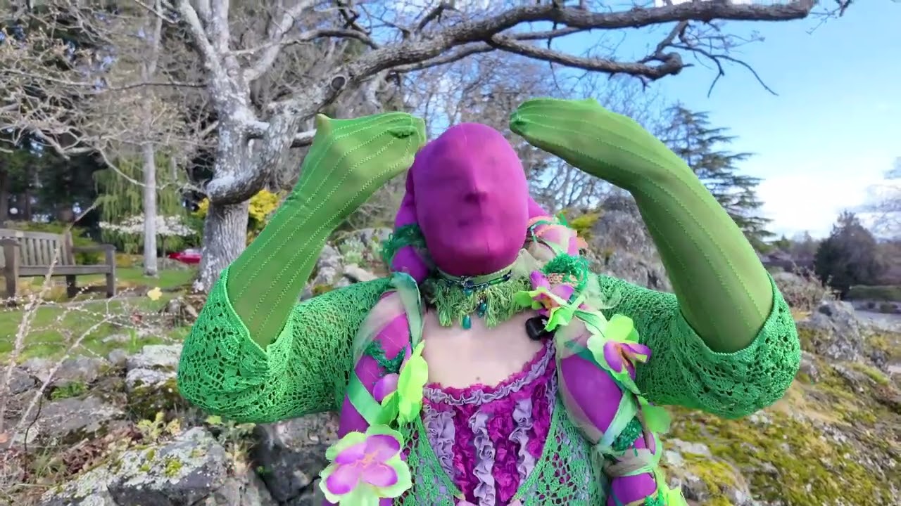 The piece is actively evolving. The linked video, filmed at Government House Gardens, predates the newest audience participation moment: “I’m a Begonia – what are you? I have a friend who tells me they’re a SweetPea, another who says they’re a frog, what are you?…”